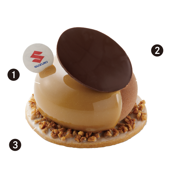 スズキの車がケーキになりました 期間中、スズキの車をイメージしたケーキを販売いたします。車の特徴を浮かべながら是非お召し上がりください。応募券を集めて参加できるプレゼント企画も開催しております。 販売期間:2026年1月4日(日)〜2月28日(土) コラボケーキ クロスビー 738円(税込) ①ミルクチョコレートのムースにブロンドチョコのグラサージュ②中心はプラリネムースとりんごのソテー③土台はサブレにクラックランアマンド コラボの詳細はコチラ